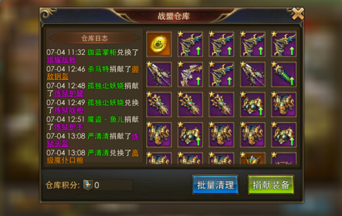 通过战盟BOSS等拉动战盟玩家间的互动,例如背包里多余的装备也可以变废为宝,可以将自己不用的装备放到战盟仓库里换取积分,然后拿积分去换取其他极品装备。