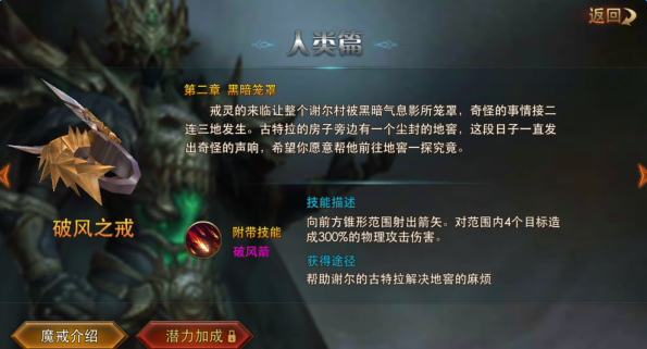 可不要小看魔戒,虽然游戏有贴心的离线挂机系统,可以瞬间升级,但是如果主线剧情卡住了没能成功获得魔戒,即使等级到了有的功能玩法也不会开放的。
