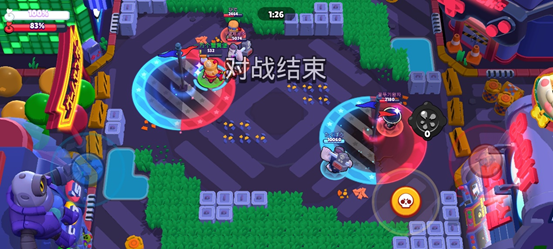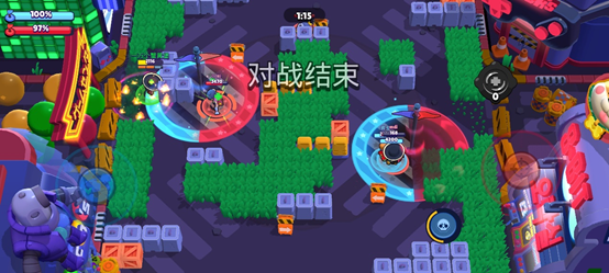 街头斗王2比较均衡,需要注意的是这是仅有的一张得分区内有硬性掩体的地图。利用两块L型掩体,充分施展“秦王绕柱”的本领,弥补英雄强度的不足。在这一地图中,右侧的长条连贯草丛很适合隐藏身形,迅速抵达右侧得分区,所以建议的英雄配伍是右侧单坦克,左侧辅助+战士。