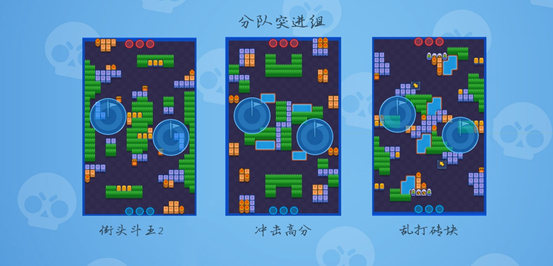 摇杆争霸和斗域奇兵,中间都有通廊,能比较及时的驰援另一得分区队友,长射程队友还可远程消耗敌军,所以也被归到了合作对抗组。需要注意的是摇杆争霸中,如果处在优势期,可以派一名队友潜伏在敌方的绵延草丛里。斗域奇兵则没有这种机会,但也避免了被阻击的风险。