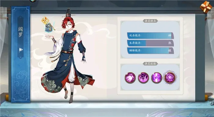 听着名字就知道其实力不凡,阎罗的地府之怒可以对敌方的全体敌人造成伤害,伤害值的判定需要根据罪业审判,神话大招技能是使用3次地府之怒后造成的伤害会增加3倍,这是阎罗的输出能力大大增加。被动技能的辅助效果也非常不错,可以增加我方的伤害和承受伤害的能力。阎罗是目前稍有的辅助和输出都非常不错的异灵,值得大家培养。