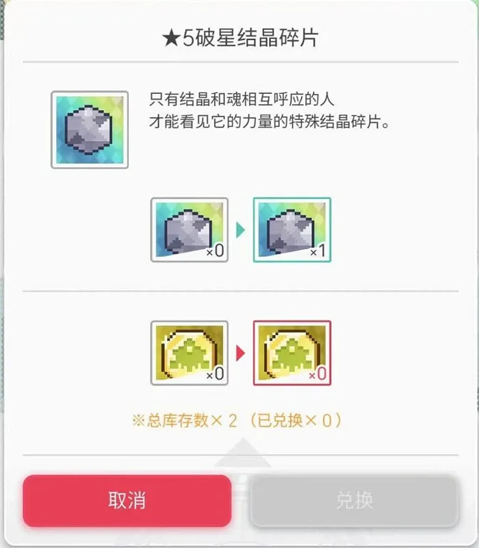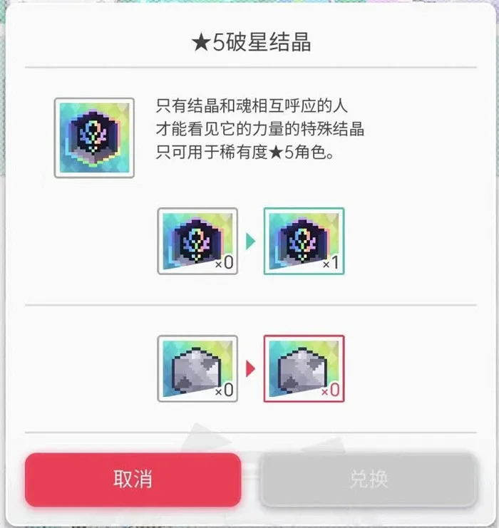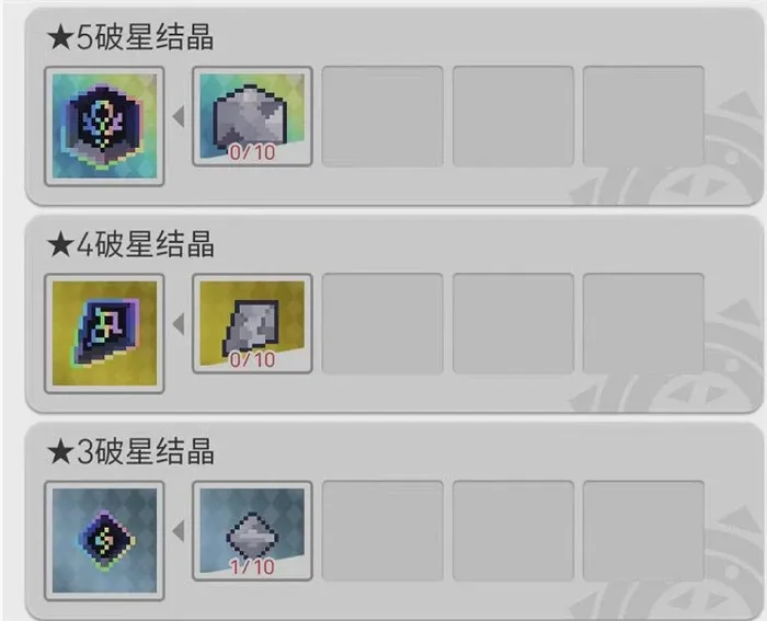 只有结晶和魂相应的人才能看见它的力量的特殊结晶,10个5破星结晶碎片可以在交易所兑换1个5破星结晶,它是用于突破五星角色等级上限的道具物品,5星角色想要突破等级上限需要用到重复角色数或者一个5破星结晶。破星结晶可以用来代替角色重复数,游戏中还有4破星结晶、3破星结晶,他们的作用是分别突破相应星级角色的上限,3破星结晶突破3星英雄等级上限,4破星结晶突破4星英雄等级上限。