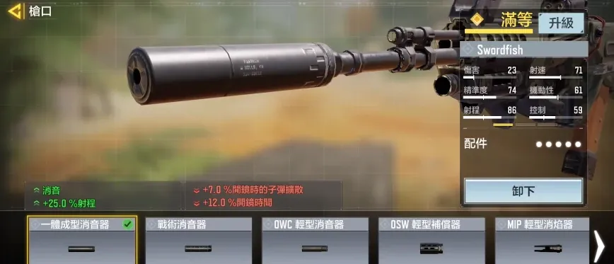 剑鱼是目前版本中唯一一个可以实现多连发的突击步枪,这使得它在中近距离有着极强的秒杀能力,尤其是对于高手玩家而言,多连发爆头可以瞬间带走敌人,哪怕是面对动力装甲也可以造成有效杀伤。但是相对的,剑鱼的基础伤害不高,为了更好地提升伤害,小编首先推荐的是一体成型消音器+长剑弹匣这两个配件,前者可以增加射程和隐蔽度,帮助大家接近敌人。后者则赋予了剑鱼五连发的功能,伤害上限大幅度提高。