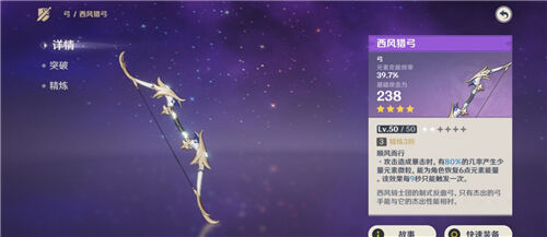大家要是五郎不输出,那么就用祭礼弓或者西风猎弓,这两个都差不多,看大家自己的选择。