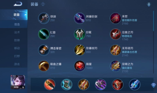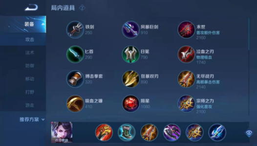 出装一:红色打野刀、抵抗之靴、无尽战刃、暗影战斧、碎星锤、名刀