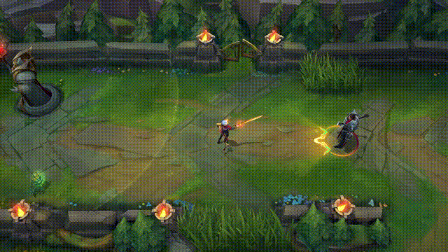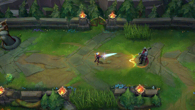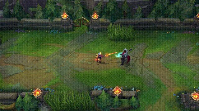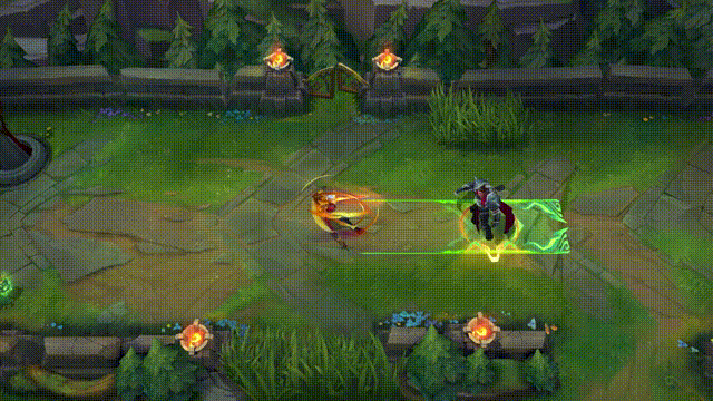 抵挡所有即将到来的伤害和控制效果0.75秒,然后朝目标方向突刺,以造成120魔法伤害,并使第一个被命中的敌方英雄速度下降(移速和攻速)。若挡掉的是定身效果,则会使敌人晕眩。