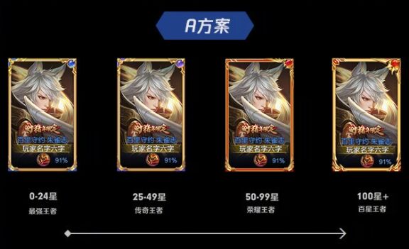 新的段位徽章为了更好的体现玩家荣誉的象征,我们对段位边框进行了翻新,新的段位边框我们提供了两种方案,方案A强调宝珠与段位徽章设计更加的一致统一,装饰都采用了宝珠的设计,并冷色到暖色的色调变化上区分每个阶段所代表的品阶感受。方案B延续了宝珠的设计,并一致使用暖色作为基底。可以选择您更喜欢的方向。
