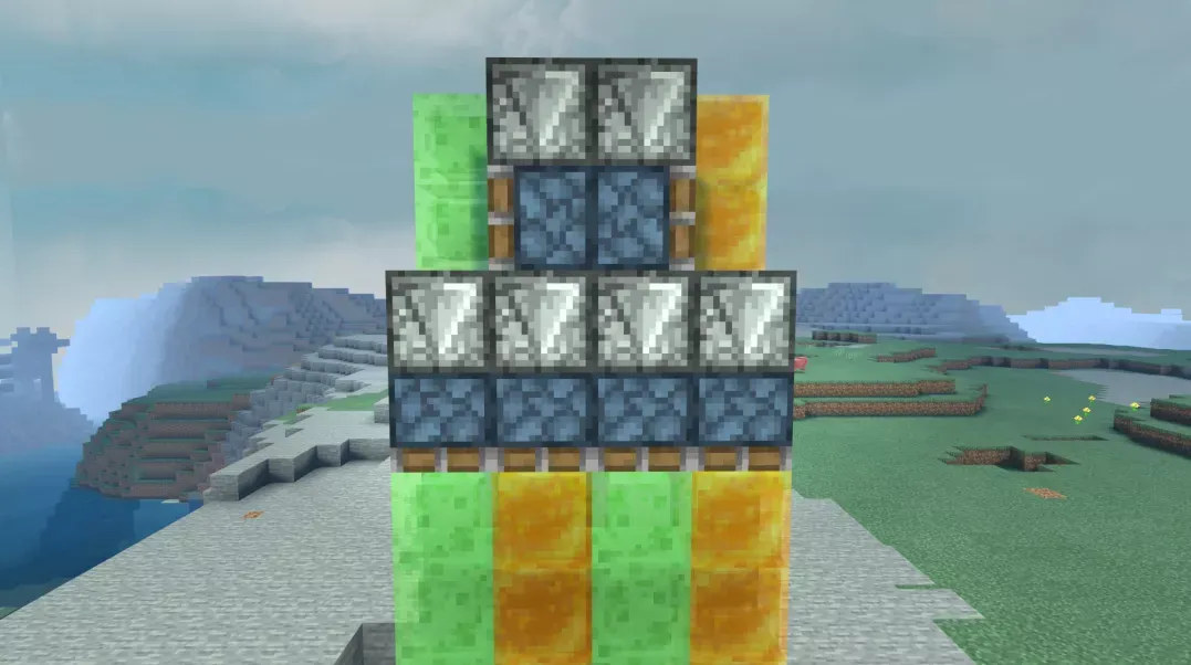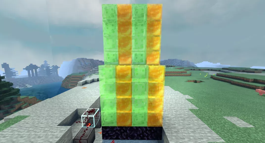 加上粘液块和蜂蜜块可以制作一个简易的升降器,粘液块和蜂蜜块不会互相粘到对方,运用在红石机关上就可以推动更多方块啦!