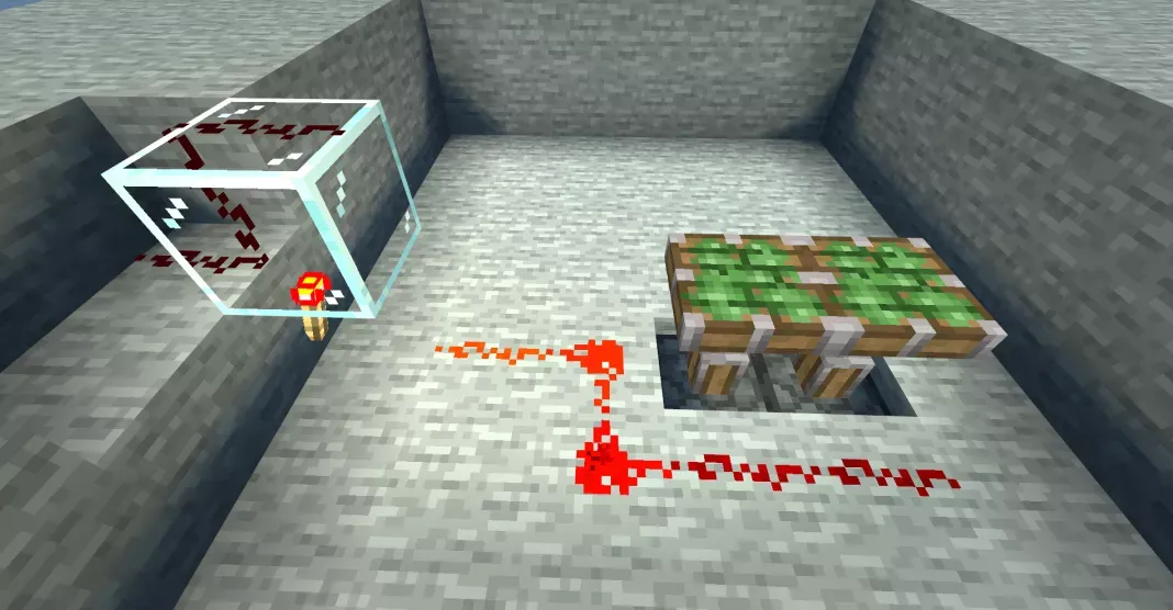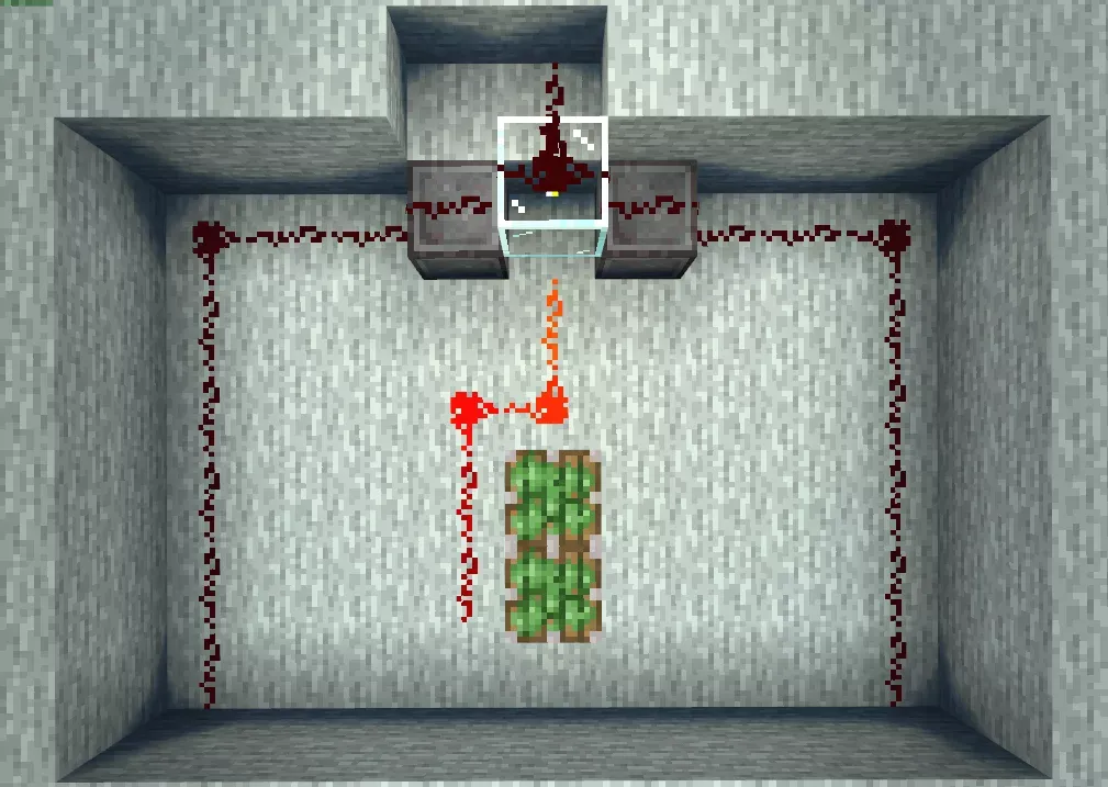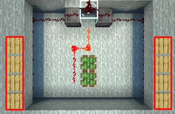 接下来,如图所示放上粘性活塞并铺设好红石线路