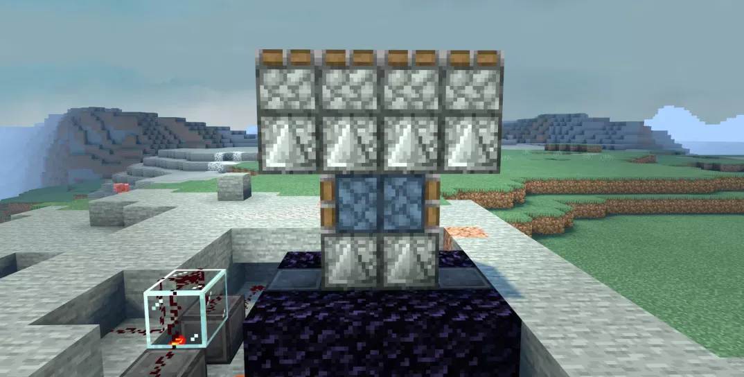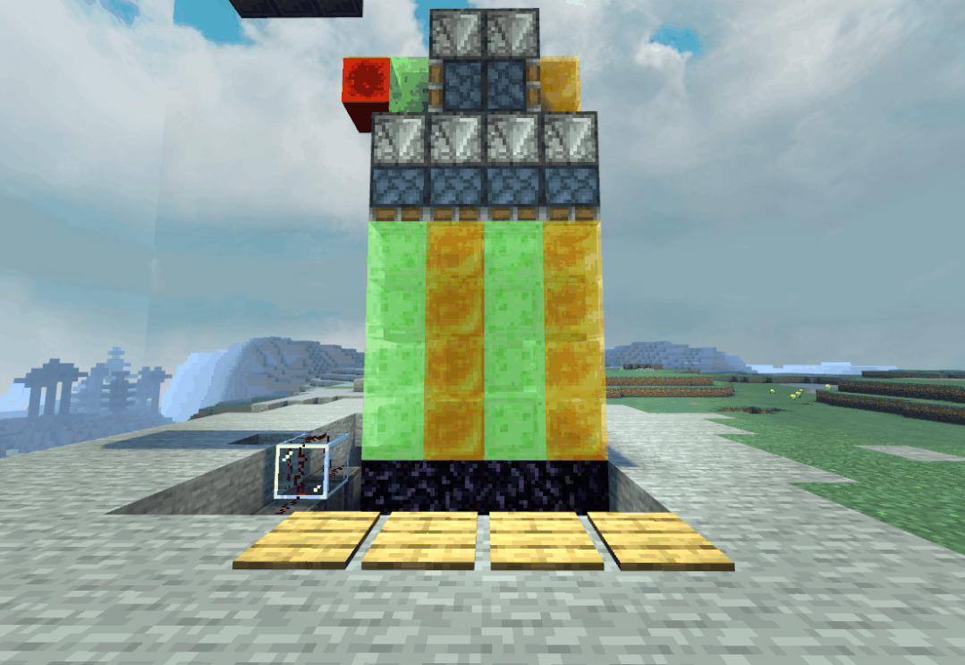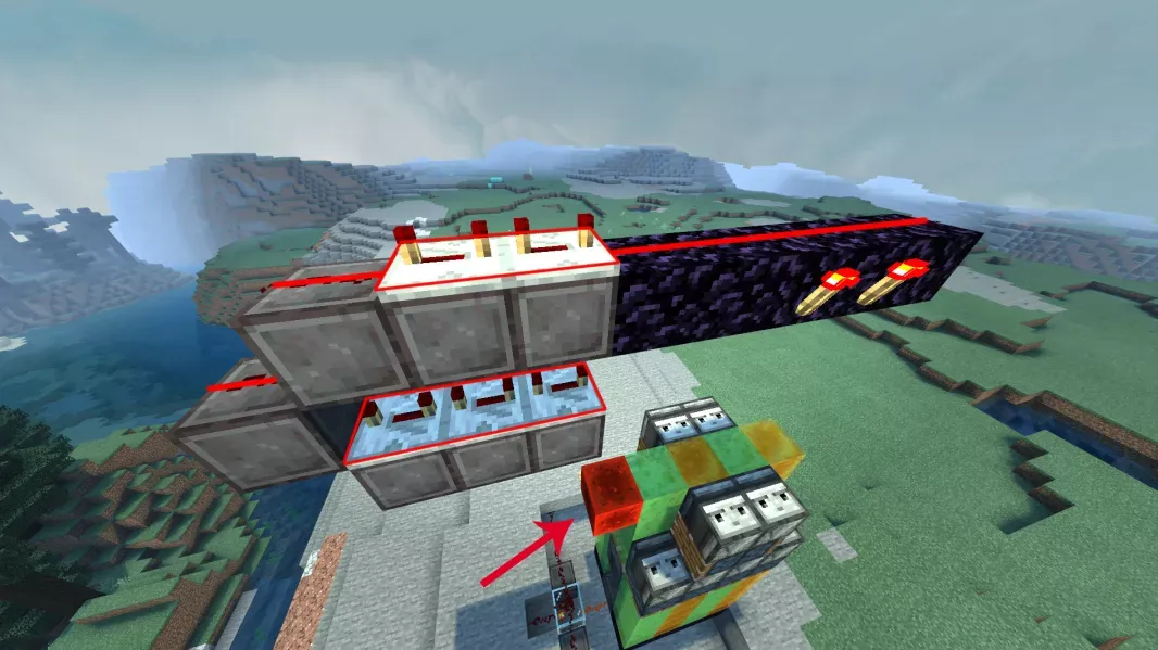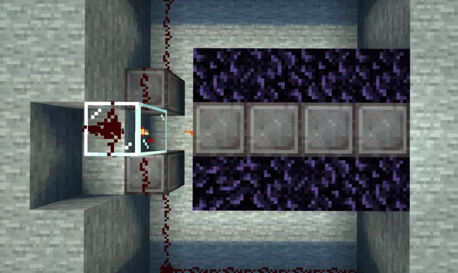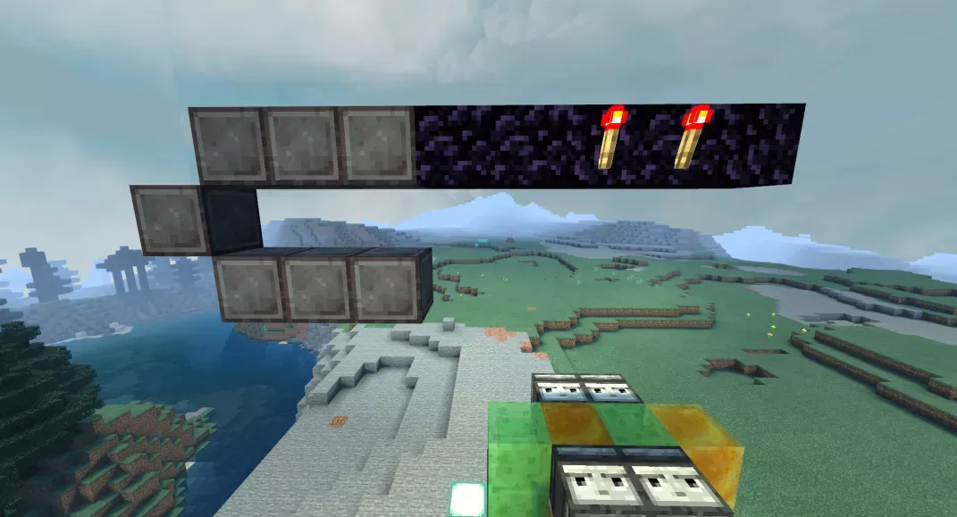 我们在粘性活塞上方铺设一层黑曜石和普通方块