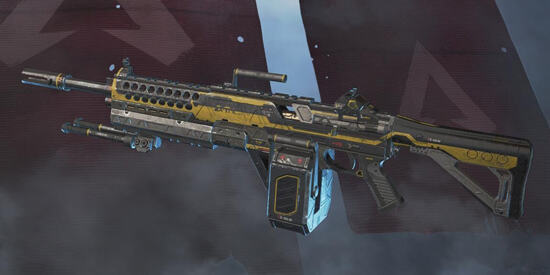 使用能量子弹的轻机枪。对于这玩意我是真的不太会评价。虽然它的后坐力很小,但是它的射速是随时间增加的,在射速慢时很危险。即使你拥有了加速配件,它的伤害还是很尴尬。基础伤害17,爆头伤害34。普通步枪水准。但是弹夹容量很大,有44发,全游戏弹夹容量最大的武器。我不会用这把枪,交给会用的人用吧(其实是因为自己脸太黑,捡不到那只金配件,有了那只金配件还是很强的),至于那个脚架,别想太多。这游戏又不能趴下,脚架装饰用的。