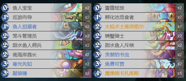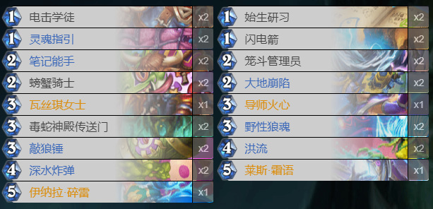 新版本相对比较成型的萨满构筑有两种:打脸萨和鱼人萨。