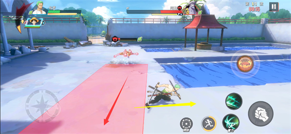 在击碎护盾之后,路飞可以利用普攻+闪避完成4次普攻连续输出,同时在路飞技能使用结束之后,可以替换佐罗上场,利用技能打完一套再换回路飞。