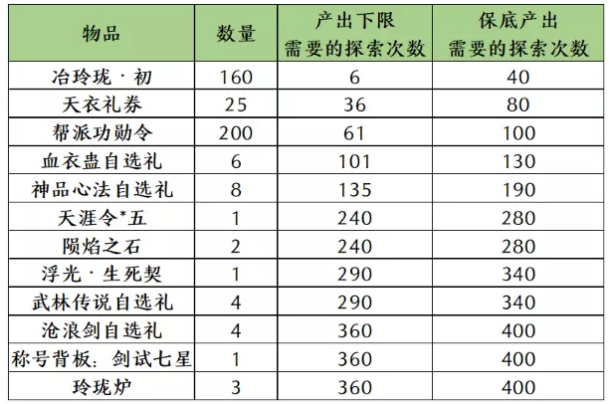 概率公示:这次活动的浮动概率很小,所以一定要懂规则。天涯令5+大铁*2:最低1680,保底1960