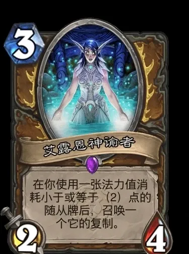 艾露恩神谕者拿下来就可以撑起很大的场面,甚至可以配合鬓卫兵,直接复制还原5费的随从,直接劝退对手。