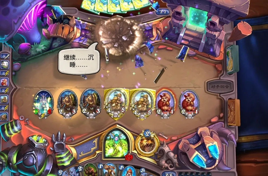 1.这套卡组的节奏非常快,一般情况3-4费可以占住整个场面,5费搭配树木生长可以直接打出斩杀。