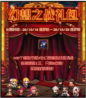 每日一局幻想模拟战不过瘾?心动好礼想要抢先获得?不用担心!在活动期间,勇士们每周皆可在商城购买幻想之战礼包,开启后,便能获得3张幻想模拟战挑战函以及100枚模拟币。