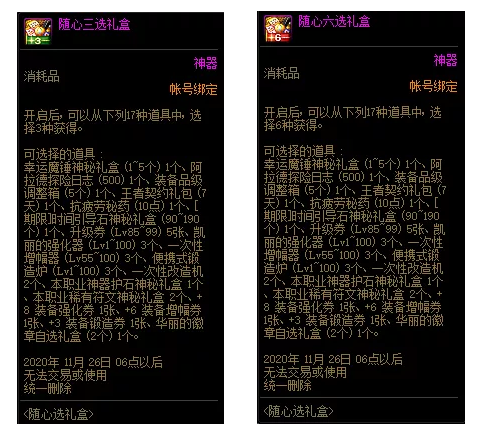 在活动期间,商城限时上架随心选礼盒,深渊、增幅,甚至幸运魔锤,皆能获得,直击内心,畅爽阿拉德!