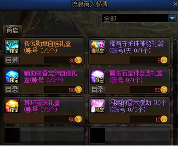对于初入阿拉德大陆的勇士而言,优先选择「期限」时间引导石神秘礼盒(90~190)、本职业神器护石神秘礼盒等道具,能够快速成型装备,缩短与“大部队”之间的装备差距。