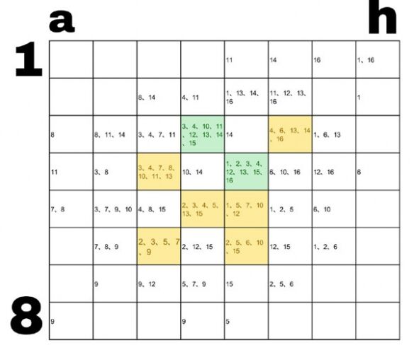 有框线的部分,无论是数值还是字母,都代表曾有人发掘出文物,同一组数字或字母,都是正好8个(即8个a,8个h……)。