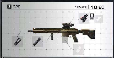 评测:相对于MK12来说,G28的优势在于威力更大,打普通防弹衣的玩家三枪就倒,枪声更小,听起来比较厚重,后坐力也更小。