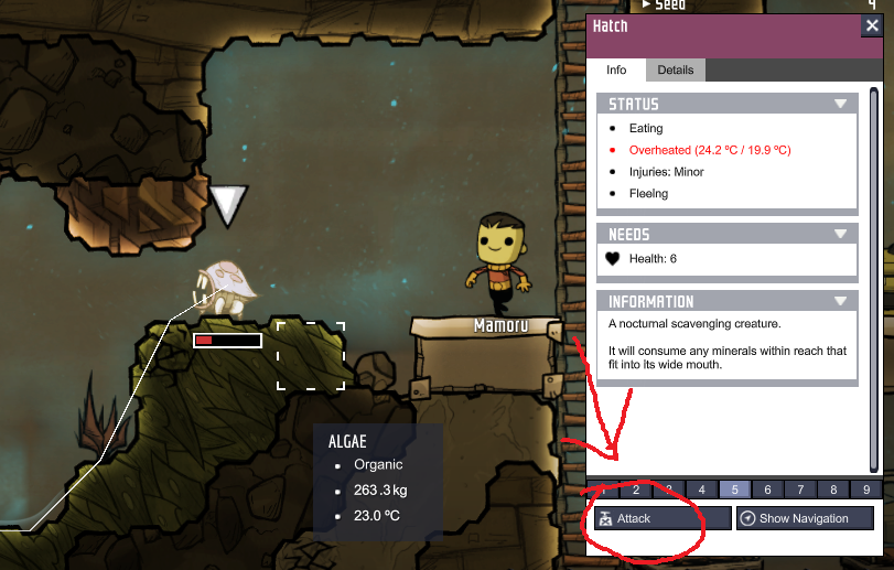 可以点击干生物弹出信息框(因为移动速度快,担心点不到的建议暂停),点击Attack(攻击),人物会行动。
