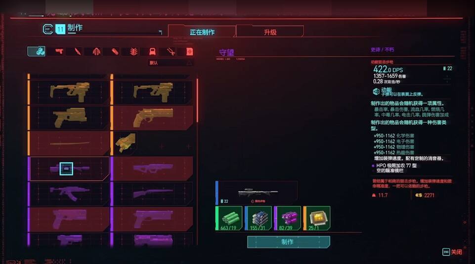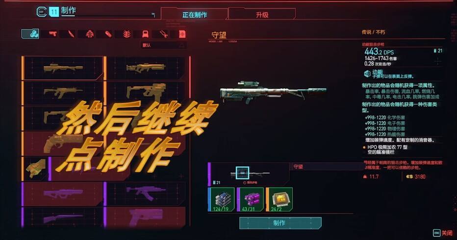 在赛博朋克2077游戏中,玩家进行武器升级到传说需要技术能力18级,点出鬼斧神工可以制作史诗装备,点出登峰造极可以制作传说装备。玩家拿到守望后,可以前往制作中心,找到史诗守望后,材料充足就可以升级。