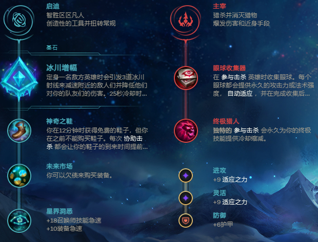 星界洞悉:星界洞悉能减少17秒闪现CD和4.5秒雪球CD,能够让你更加频繁的使用闪现Q、E闪和雪球来开团。