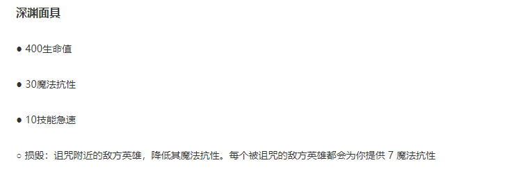 深渊面具:被动很舒服,但是不加法强,可以出,但不推荐出。