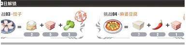 麻婆豆腐:7个豆腐、2个辣椒、1个猪肉;