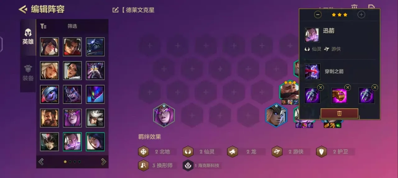 2、搜牌节奏:3—2的时候升到6人口,此时可以暂停升级,将队伍的英雄平局你升级到二星以上。在此之后就能继续存钱了,保持着6人口满利息慢慢D就行。这个时候就等蜘蛛,杰身这些英雄,来着之后就上7人口2护卫。后期潘森蕾欧娜无所谓,先来哪个就用哪个,到了7人就该把寒和冰龙女这些英雄升到三星了。