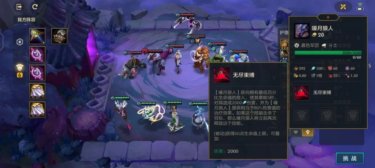 1、嚎月狼人这一关相对来说是比较简单的,只要多注意一下阵容之间的的搭配就可以过关。需要注意的点是努努的吞噬技能,这是这一关的通关关键。