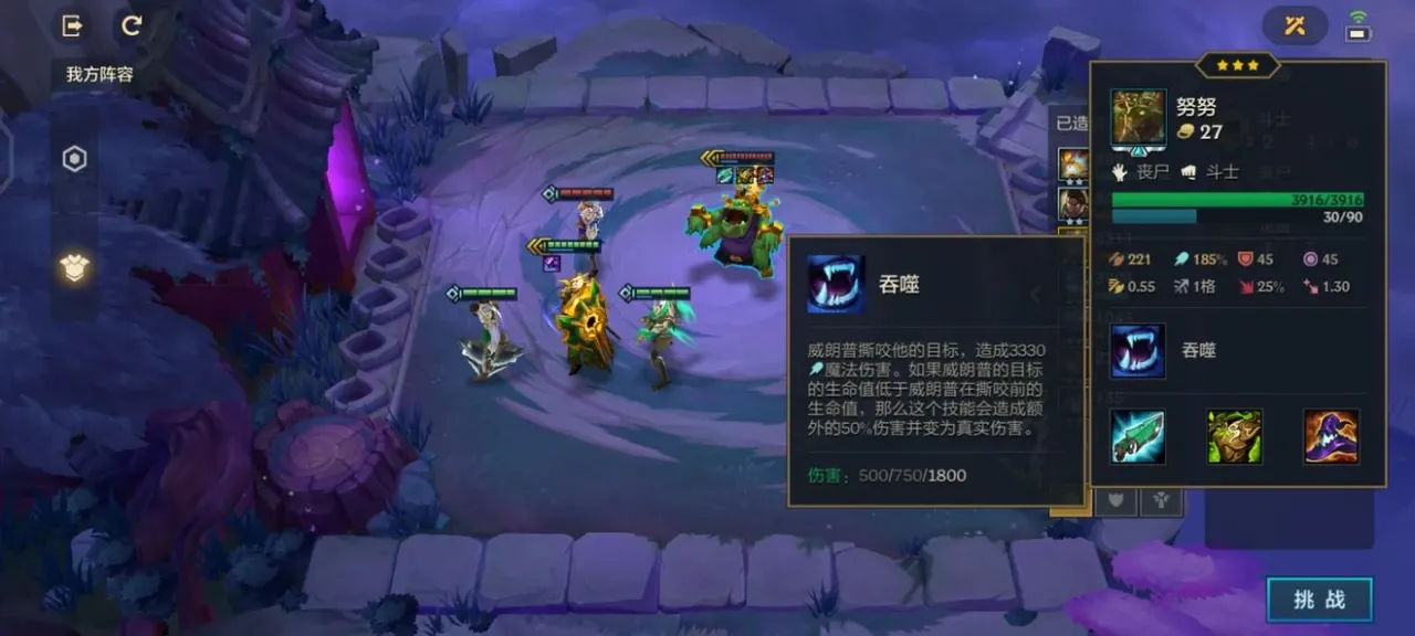 2、传送门是带有嘲讽效果的,这个可以让BOSS努努在开局的几个回合内放不出技能来,可以很大程度拖延攻击的时间。