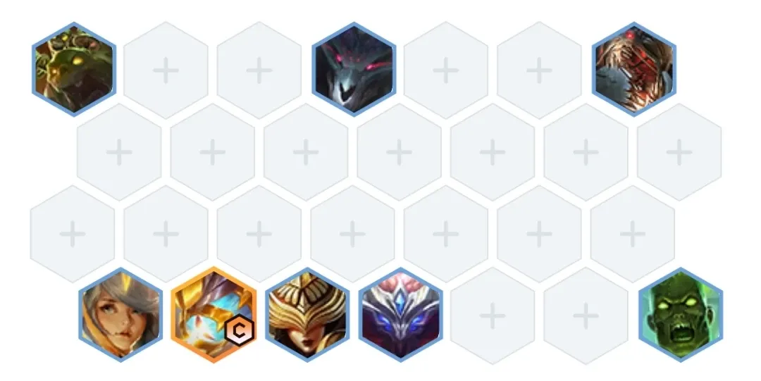 阵容由大眼睛,稻草人,努努,火男,艾翁,狗熊,拉克丝,辛德拉组成,这套阵容需要八人口就可以成型,阵容可以组成的羁绊效果为三复生亡魂,三丧失,三圣光卫士,两斗士,两秘术师,两法师以及一个两神谕者的效果,阵容的羁绊非常多,是一套非常强力的上分阵容。