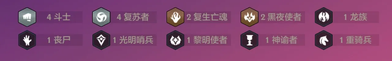 阵容羁绊:四斗士四复苏者两复生亡魂两黑夜使者。