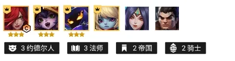 阵容羁绊:两帝国三法师三约德尔人两骑士。