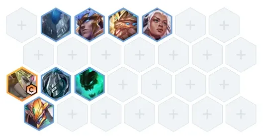 这套阵容以骑士铁甲卫士羁绊为主体,搭配征服者以及圣光,能让前排有一个很好的坦度,足以支撑到天使登神。
