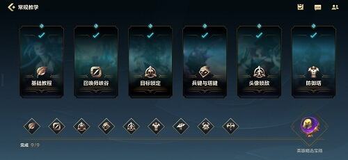 3、在常规教学里面就是新手玩家指南教程了,玩家完成所有的教学任务还可以获得一个英雄精选宝箱。
