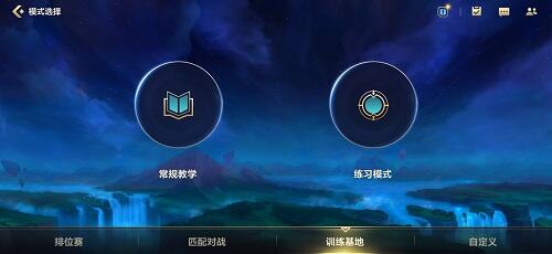 2、在最下方的四个模式选择中,我们选择训练基地,点击常规教学。