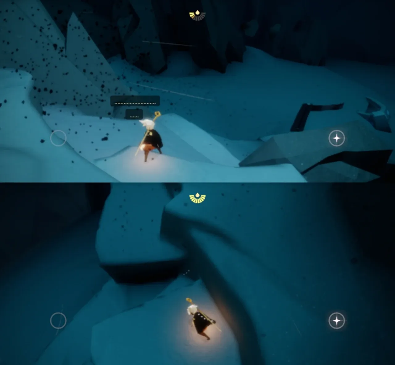 二段路需要在左侧墙壁找到三角形缺口,三号身高及以上只要靠近墙壁跳一跳即可跳出去。之后蹭云飞行,找准机会蹭到右边的云,在飞行一段时间后可以看到白色的方块状的一小块水,降落之后竖直飞起到达平台上,二段路即可通过。建议九翼或者十翼进行暴风眼飞行训练,如果学会了暴风眼飞行,前往献祭的时间就会大大减少。