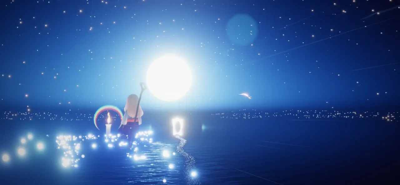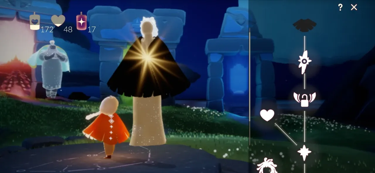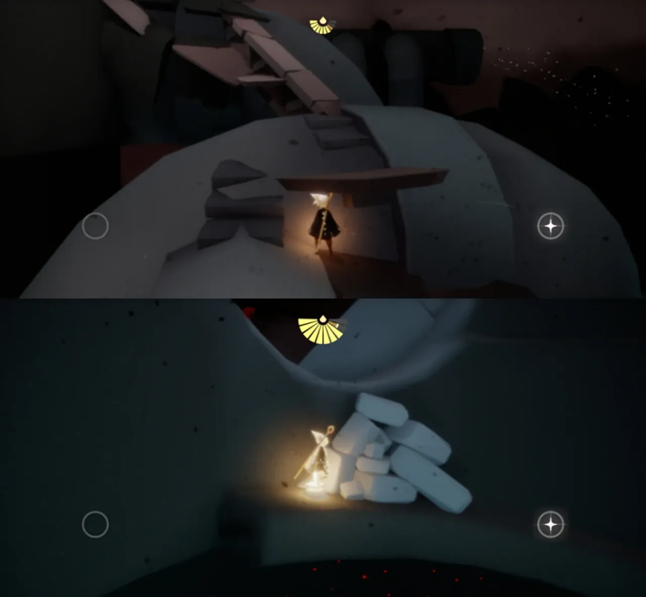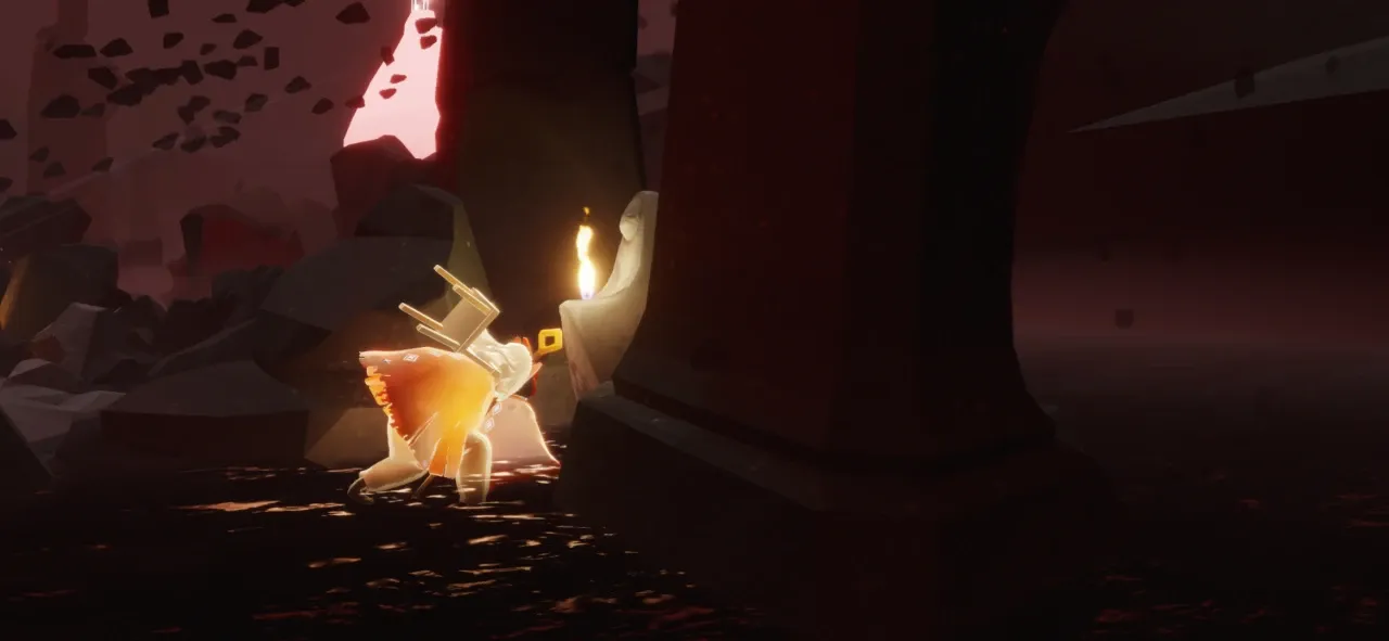 那么第三段路就是献祭之路,在这里有着间断的红石雨,以及更加危险的暴风和碎石。玩家需要在其中找到石像,并点击石像将光翼献祭给它,得到光翼的石像会在重生之门给予玩家升华蜡烛,全图共有大约60个石像,四个石像可以得到一根升华蜡烛。升华蜡烛可以兑换永久光翼、与好友解锁更多动作或是购买东西。