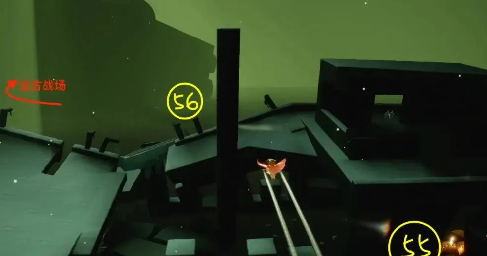 之后到达三龙图,分别在高出平台上,最高骨山中,低处管道,下一图入口处。最后三个在古战场高处门上,大门右侧柱子后面,以及最后一图的右边路上。收集到这里一共可以得到71个光翼,距离八星斗篷还差4个,我们可以前往禁阁地图。