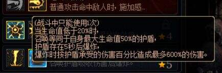 当生命值低于20%时,召唤等同于自身最大生命值50%的护盾,护盾存在时间为5秒,消失时爆炸并且造成伤害,按照护盾承受伤害百分比造成最多600%的伤害。