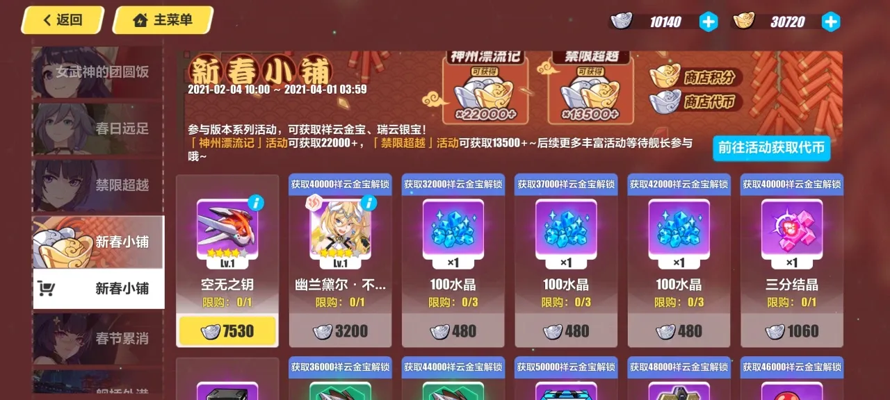 诸位有空自身算算吧,剩下的这一些活动,你还能否拿齐奖品,我神之键算作伤害了,但是羽渡尘已得手,可肝神之键爱给不给(讲个笑话,可肝)。之后一定有复制,圣痕也相同。没错,按以往活动来看,最终也许是会有曜石换金银元宝的操控的,只差点的游戏玩家还有概率。但是这俩对非氪金玩家的实力影响特别之低,玩游戏,就该顺着自身的情意来,没领到的奖品不拿也好。