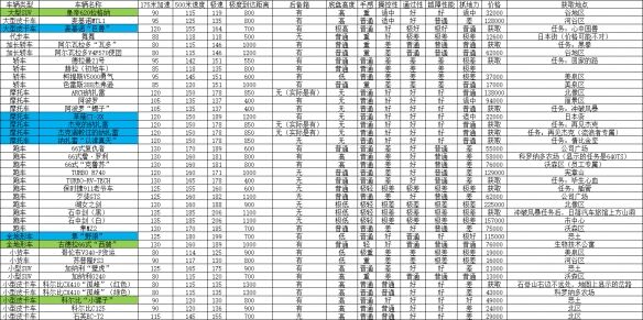 表里标蓝的,是推荐载具,在所有环境下都有不错的表现,标绿的,是可用货色不算好,但也可以。
