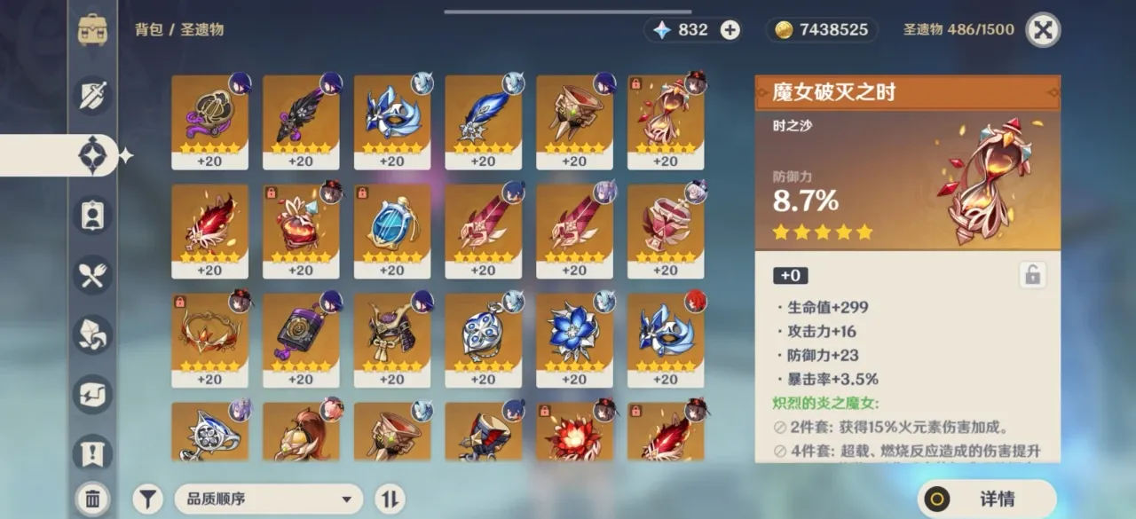 另一个新圣遗物华馆梦醒形骸记,它是可以叠加满自身被动,且能够加成百分之五十四的防御力和百分之二十四的岩元素伤害,2.3目前已知的三个岩元素人物角色建议每人都需要整一套此圣遗物。大多数朋友们应该从来没有刻意的去刷过防御主词条或者副词条的圣遗物,如有不幸刷到,也是直接当做其他圣遗物的经验材料来用。