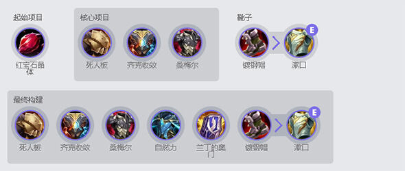 在出装选择上,这套可能和绝大部分辅助玩家或者使用女坦玩家的选择有些许出入,出装这个东西本身就有着非常多的选择,适合自己的才是最好的,所以还是以个人的打法和使用习惯给大家推荐下蕾欧娜的出装吧。一级出门选择红宝石,增加血量的同时提升对线作战时的血量优势;也可以选择小布甲,增加一定的物理坦度,如果敌方辅助是AP英雄还是建议红水晶,三件核心装为亡者的板甲(亡板)、基克的聚合和荆棘之甲(反甲)。六神装为亡板、基克的聚合、反甲、自然之力、兰盾,鞋子选择铁板靴后期升级成石像鬼板甲,如果对方控制技能较多可以换成水银之靴。在出装上都是以常见的坦克型辅助装备为主,所以就不做过多的装备解析了。对了,新出的防御装冬至降临在实战中也看到有玩家出这件装备,这件装备前期属性一般,但后期合成芬布尔之冬后的属性就十分强大了,毕竟所提供的护盾还是来的非常实在的。