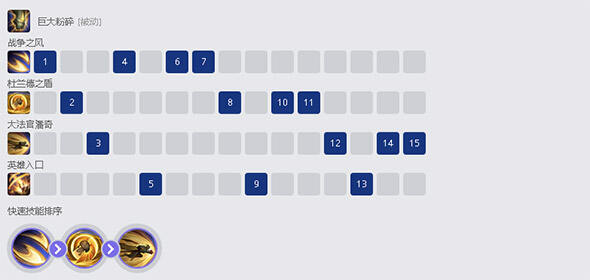加里奥的技能加点其实可选择性非常少,除非是需要一级团抓人,不然一级基本都选择1技能;二级可以看敌方中单和打野英雄,如果敌方打野频繁照顾中路可以选择二级学3技能,增加逃生手段。点法主1技能副2技能,3技能前期点一级就好。