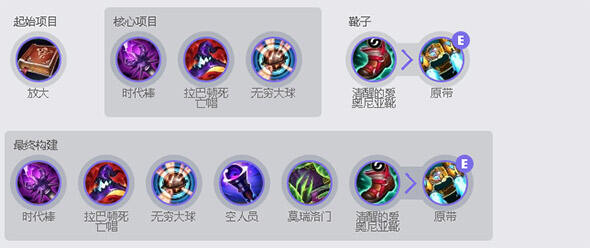 在出装选择方面,贰七以个人实战经验和个人习惯,给大家推荐了这一套出装,我和大家说下这套出装的一些优势和特点,大家在选择的时候也可以根据个人打法做不同改变。六神装选择时光之杖、灭世者之帽、无限法球、明朗之靴(合成推推棒)、虚空权杖和重伤书。第一件选择时光之杖,提供的蓝量、血量以及时光杖“挨打回蓝,打别人回血”的被动属性还是很适合加里奥的;第二件直接上灭世者之帽,提供高额的魔法加成,同时也可以补足一点团队的伤害和单线作战时的连招秒人能力。第三件选择无限法球,进一步提升我们的伤害,谁说加里奥只能出肉装了,玩加里奥也要有一颗carry的心!鞋子可以选择明朗之靴(CD鞋),毕竟加里奥自身的四个技能冷却时间都比较久;鞋子合成推推棒,推推棒对于加里奥使用2技能、3技能都非常好用,开团、先手神器了。最后两件看个人打法习惯和场上局势,贰七个人选择法穿棒和重伤书,都是在面对敌方的一些特殊阵容和英雄存在时的克制法宝。