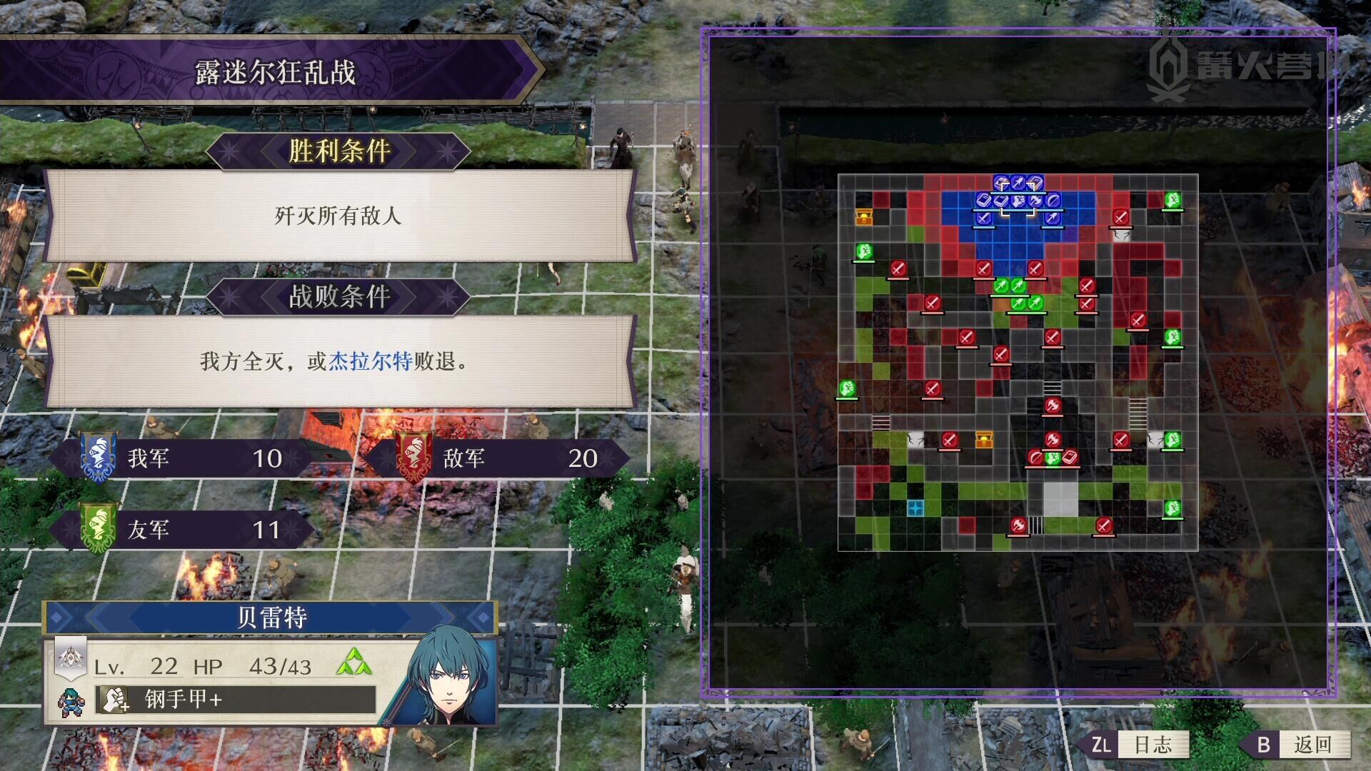 本次战斗主要目标是协助 NPC 部队消灭敌军,地图左上和中间靠下部分各有一个宝箱,需提前准备盗贼职业或者准备好宝箱钥匙,关卡最麻烦的地方在于部分位置区域无法直接进入攻击敌人拯救 NPC,因此魔道、弓箭单位相对会非常有利。